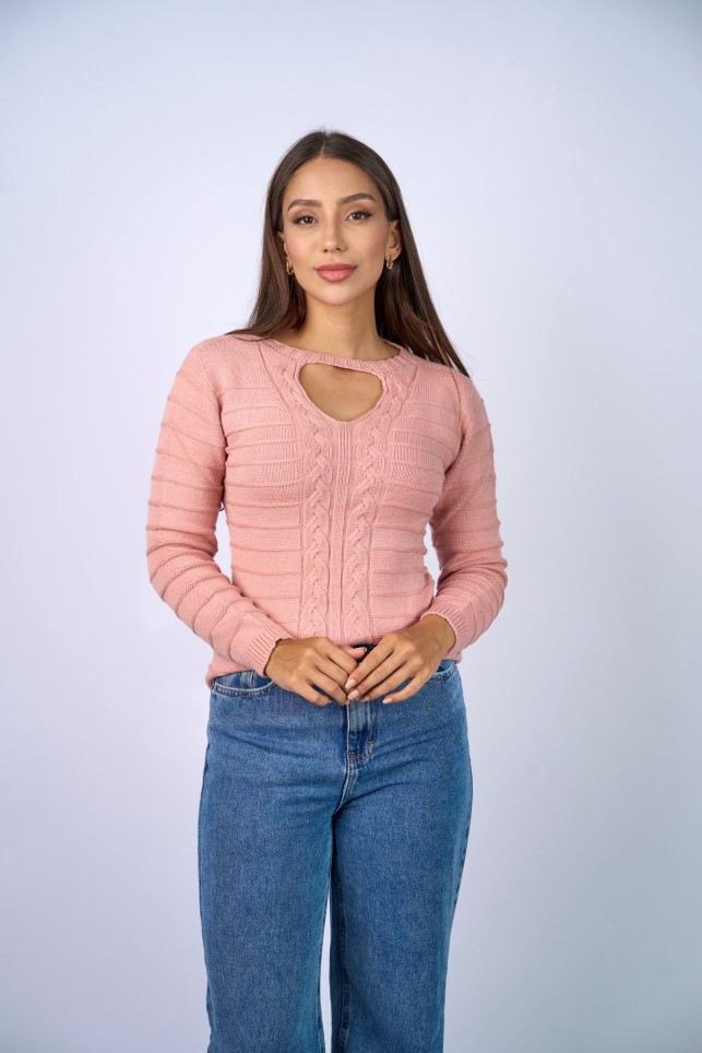 BLUSA EM TRICOT FIO MODAL, COM DETALHE EM GOTA.
