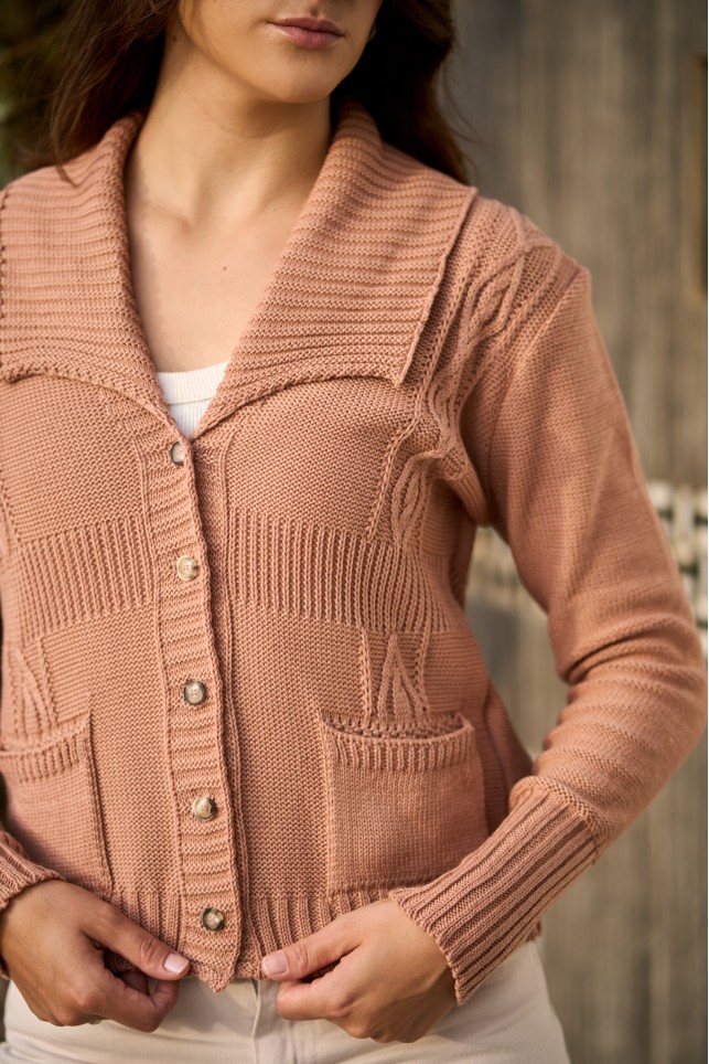 Casaquinho em Tricot com Botões e Bolsos Frontais.